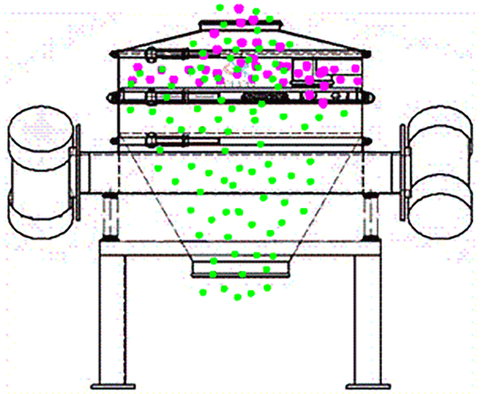 同樣是電機(jī)提供振動(dòng)源,物料從進(jìn)料口進(jìn)入,在振動(dòng)作用下,小顆粒穿過篩板到達(dá)出料口;篩機(jī)蓋使整個(gè)振動(dòng)篩稱為一個(gè)密封環(huán)境,物料就不會(huì)受到污染或亂飛;彈簧則是在振動(dòng)狀態(tài)下起到減震作用,如果沒有彈簧,振動(dòng)篩是無法工作的。