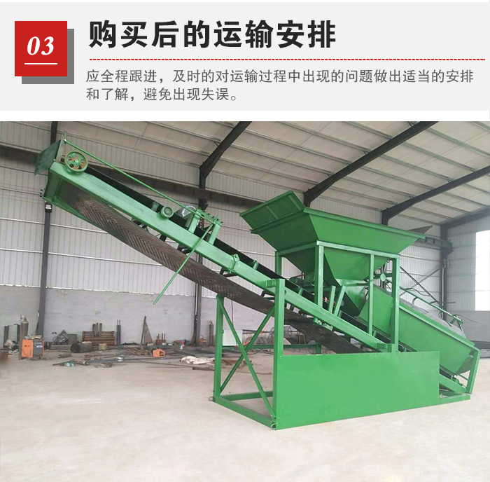 篩沙機在采購?fù)戤吅螅瑥S家會在設(shè)備完成后進行運輸發(fā)貨,此時,用戶應(yīng)全程跟進,及時的對運輸過程中出現(xiàn)的問題做出適當?shù)陌才藕土私猓苊鈴S家出現(xiàn)失誤,出現(xiàn)小配件漏發(fā)等問題。