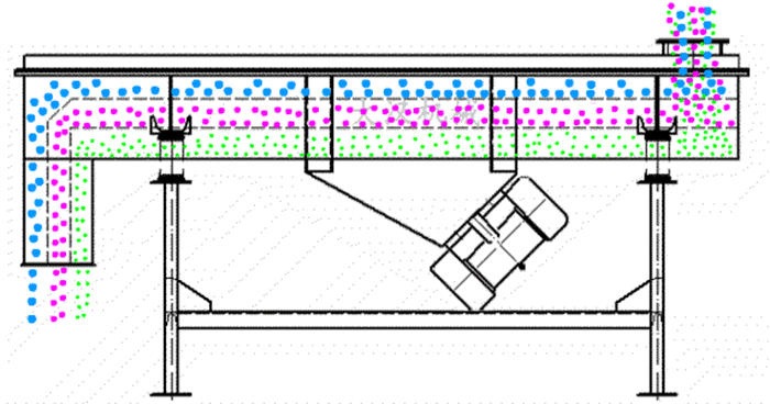 食品直線振動篩的結構主要由篩箱,篩框,振動電機,電機臺座,減振彈簧,支架等組成。其中振動電機是主要的配件之一其主要的作用就是進行設備的振動,帶動食品直線振動篩里的物料進行運動,利用篩網孔徑的大小來控制物料粒度的大小,從而實現篩分目的。